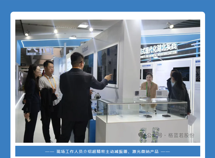 11月5日,備受矚目的第七屆中國國際進(jìn)口博覽會在上海盛大開幕。本次博覽會吸引了來自152個國家、地區(qū)和國際組織的廣泛參與,國家展和企業(yè)展總面積超過42萬平米,參展龍頭企業(yè)達(dá)297家,展示了全球范圍內(nèi)的頂尖技術(shù)和優(yōu)質(zhì)產(chǎn)品。在如此盛大的國際舞臺上,武漢格藍(lán)若智能技術(shù)股份有限公司(以下簡稱“格藍(lán)若股份”)作為湖北省科技創(chuàng)新型企業(yè)的代表之一,攜其超精密主動減振器和激光微納產(chǎn)品精彩亮相,吸引了眾多目光。