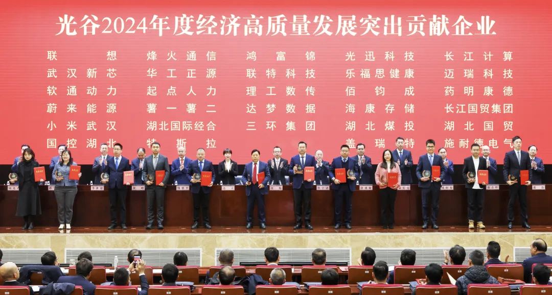 會(huì)上通報(bào)了光谷2024年度經(jīng)濟(jì)高質(zhì)量發(fā)展突出貢獻(xiàn)人物等優(yōu)秀個(gè)人和企業(yè)(機(jī)構(gòu)),并為優(yōu)秀企業(yè)家代表、優(yōu)秀企業(yè)代表授牌。