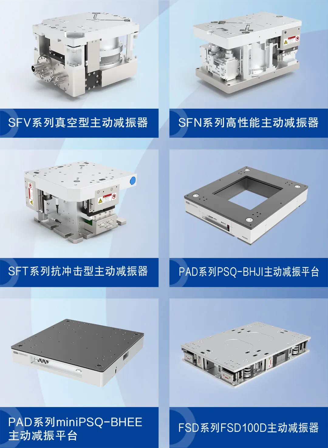 本次展會(huì)格藍(lán)若精密將攜精密制造行業(yè)、精密機(jī)床、航空航天、電子電鏡、顯微測(cè)量等應(yīng)用場(chǎng)景的全方位解決方案和產(chǎn)品亮相。本次展會(huì)產(chǎn)品主要包括PAD一體式、SFT氣浮型、SFN復(fù)合彈簧型、SST鋼彈簧、FSD抗沖擊型、大推力方案、兩級(jí)減振方案等核心系列,期待您的光臨。